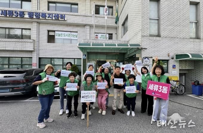 태산뉴스 이동욱 기자 | 수원시 권선구 세류3동 새마을회는 지난 26일, 세류3동 행정복지센터에서 정조사거리 일대에 이르는 구간에서 '대한민국 새단장 캠페인'을 실시하며, 추석맞이 집중 환경정비를 진행했다.