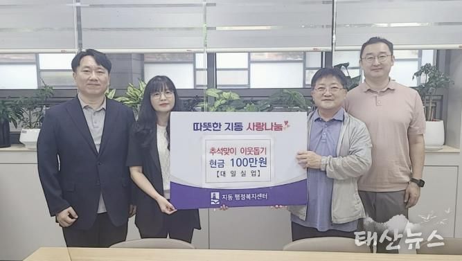 태산뉴스 이동욱 기자 | 지난 26일, ㈜대일실업은 추석 명절을 맞아 어려운 이웃을 위해 사용해 달라며 현금 1,000,000원을 지동 행정복지센터에 기탁했다.