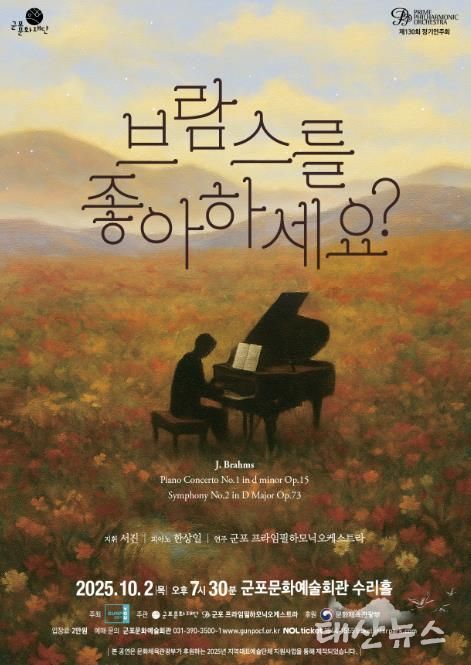 태산뉴스 이지율 기자 | (재)군포문화재단은 오는 10월 2일 오후 7시 30분, 수리홀에서 기획공연 “가을음악회 : 브람스를 좋아하세요?”를 개최한다.