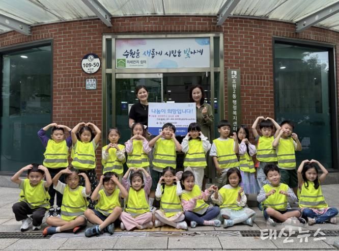 태산뉴스 이동욱 기자 | 수원시 장안구 조원2동에 위치한 조은유치원 원아들이 아나바다 바자회 수익금을 조원2동에 기탁하여 훈훈한 감동을 주고 있다.