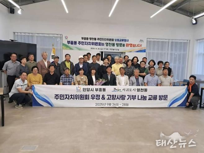 태산뉴스 이동욱 기자 | 안양시 부흥동 주민자치위원회는 지난 26일부터 28일까지 3일간 제주특별자치도 서귀포시 영천동을 방문해 영천동 주민자치위원회와 친선결연 교류행사를 가졌다고 30일 밝혔다.