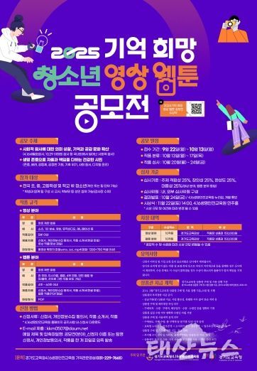 태산뉴스 김준수 기자 | 경기도교육청4.16생명안전교육원이 ‘2025 기억 희망 청소년 영상‧웹툰 공모전’을 개최한다.