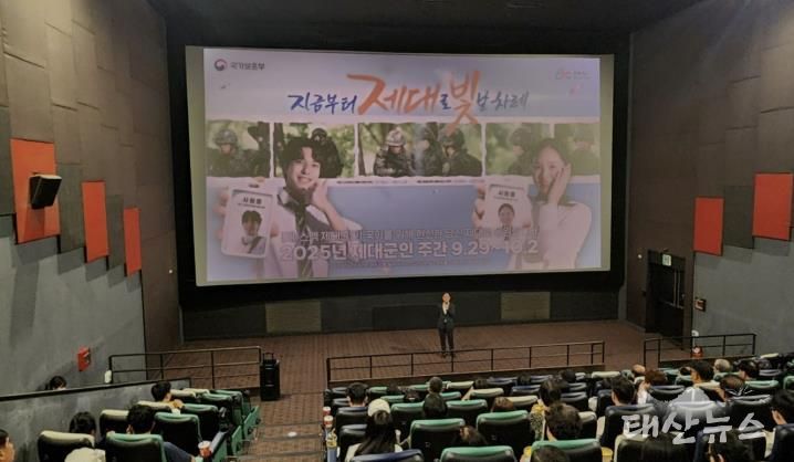 태산뉴스 김준수 기자 | 경기북부보훈지청 제대군인지원센터는 2025년 제대군인 주간을 맞아 9월 26일 CGV 신세계백화점의정부점에서 제대군인과 가족 100여 명을 초청해 영화 '어쩔수가없다' 단체 관람 행사를 개최했다.