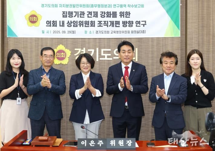 태산뉴스 김준수 기자 | 경기도의회 자치분권발전위원회 총무행정분과는 9월 29일 도의회 교육행정위원회 회의실에서 '집행기관 견제 강화를 위한 의회 내 상임위원회 조직개편 방향 연구' 착수보고회를 개최했다. 이번 연구는 향후 의원 정수 확대에 따라 예상되는 의정 환경 변화에 대응하고, 특히 교육분야 상임위 증설의 필요성을 검토하기 위해 추진됐다.