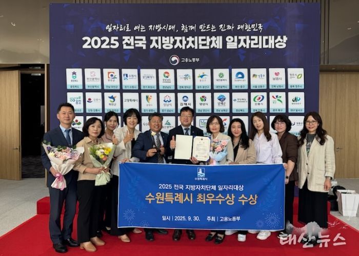 태산뉴스 이동욱 기자 | 수원특례시가 고용노동부 주관 ‘2025년 전국지방자치단체 일자리 대상’ 지역일자리 목표 공시제 부문에서 최우수상(고용노동부장관상)을 받았다.