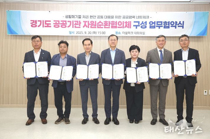 태산뉴스 이동욱 기자 | 자원순환 정책과 폐기물 처리 현안 및 정보 공유를 위해 경기도 내 7개 공공기관이 전국 최초의 자원순환협의체를 출범했다.