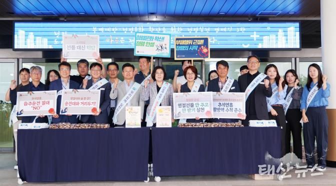 태산뉴스 이동욱 기자 | 안성시는 지난 30일 시청 로비에서 추석명절을 앞두고 선물 주고받는 관행을 개선하고 청렴한 명절문화 정착을 위해 ‘청렴주의보 발령과 함께 선물 안 주고 안 받기 캠페인’을 개최했다.