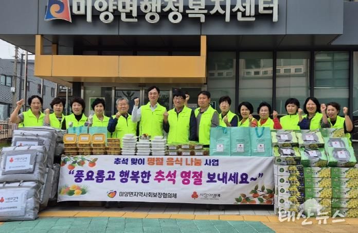 태산뉴스 이동욱 기자 | 미양면 지역사회보장협의체는 지난 30일 추석을 맞이 하여 돌봄이 필요한 저소득 독거 어르신 50가구에 모듬전 및 제철 과일 등 명절 음식 나눔 행사를 실시했다.