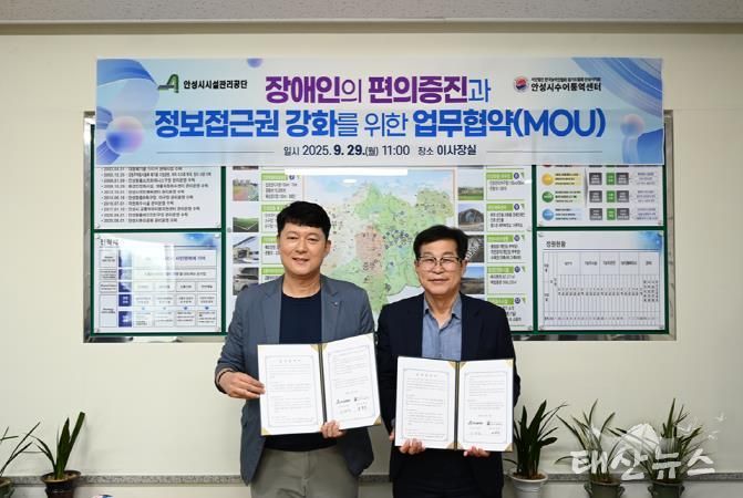 태산뉴스 이동욱 기자 | 안성시시설관리공단은 지난 29일 오전11시 공단 2층 이사장실에서 안성시수어통역센터와 안성시 공영주차장을 이용하는 장애인의 편의증진과 정보접근권 보장을 위한 업무협약을 체결했다.