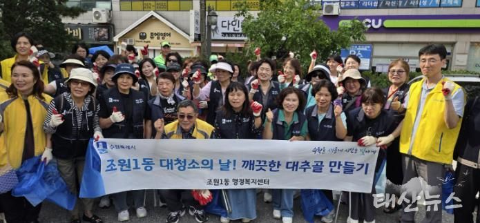 태산뉴스 이동욱 기자 | 수원시 장안구 조원1동은 추석과 APEC을 맞아 추진 중인 국민 참여 운동인 「대한민국 새단장」 캠페인의 일환으로 추석맞이 대청소를 실시했다.