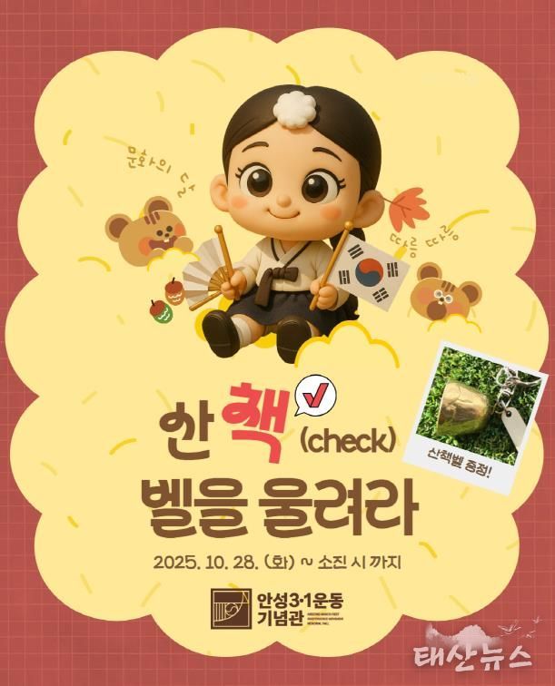 태산뉴스 이동욱 기자 | 안성3.1운동기념관은 10월 문화의 달을 맞이하여 10월 28일(화)부터 특별 체험활동 “산책(Check) 벨을 울려라”를 진행한다.