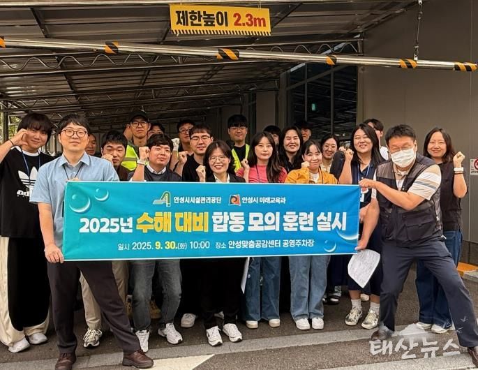 태산뉴스 이동욱 기자 | 안성시시설관리공단은 지난 30일 오전10시 안성 맞춤공감센터 공영주차장에서, 안성시 미래교육과 청소년팀과 국지성 집중 호우 등 자연재해로부터 시설과 인명을 보호하기 위한 2025년 수해대비 합동 모의 훈련을 실시했다고 밝혔다.