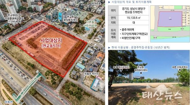 태산뉴스 이동욱 기자 | 성남시는 판교동 578번지 옛 차량등록사업소 부지의 개발 방향을 ‘기업 유치 및 복합문화체육시설 조성’으로 확정하고, 내년부터 사업을 본격 추진한다고 2일 밝혔다. 이는 16년간 방치된 부지를 지역 발전과 시민 편익 증진의 거점으로 탈바꿈시키려는 시의 강력한 의지가 반영된 결과다.