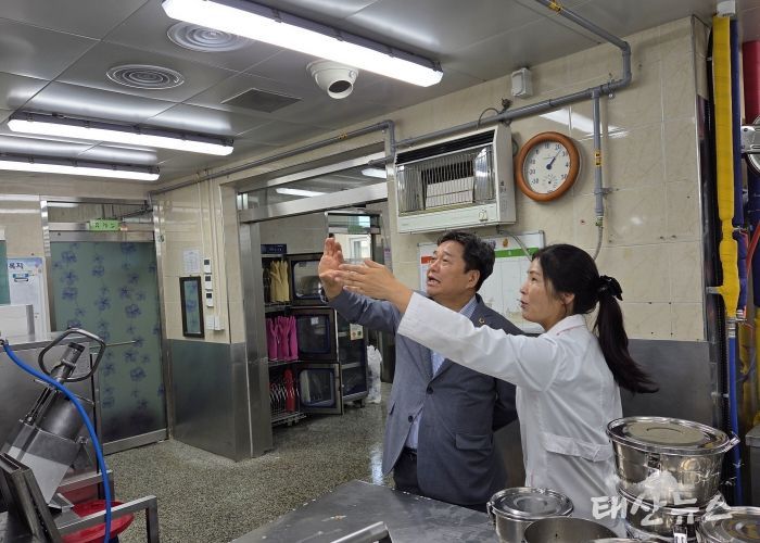 태산뉴스 김준수 기자 | 경기도의회 교육기획위원회 김호겸 의원(국민의힘, 수원5)은 지난 9월 16일 광주시 남한산성면 소재 번천초등학교(교장 오재선)를 방문하여 학교 급식실 환기설비 개선 현황을 점검했다.