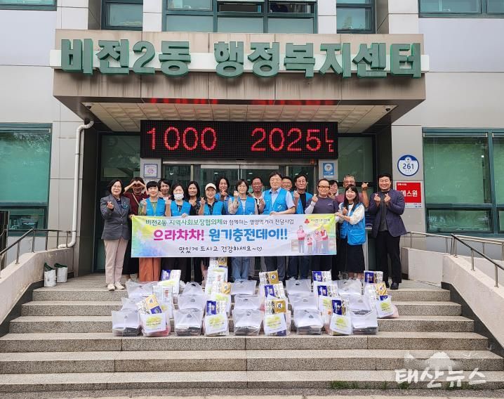 태산뉴스 이동욱 기자 | 평택시 비전2동 지역사회보장협의체는 지난 2일 지역 내의 홀로 사는 어르신 및 저소득 위기가정 15가구에 추석맞이 명절 먹거리를 전달하는 ‘으라차차 원기충전데이’를 추진했다.