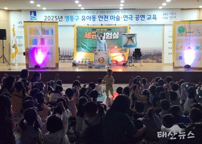 태산뉴스 이동욱 기자 | 수원시 영통구는 2025. 10. 13. 영통구청 대회의실에서 관내 유아를 대상으로 안전한 위생 습관을 형성하기 위한 ‘찰리박사의 세균실험실’ 체험형 안전마술·연극 공연 교육을 실시했다.