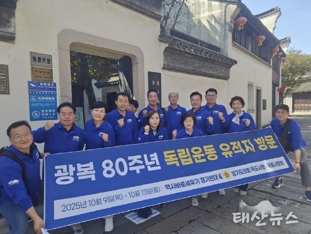 태산뉴스 김준수 기자 | 광복 80주년을 맞아 중국 내 항일 독립운동 유적지를 탐방한 경기도의회 ‘독도사랑ㆍ국토사랑회’와 ‘역사바로세우기 경기연대’가 5일간의 일정을 마치며, 선열들의 숭고한 정신을 이어받아 경기도에서 올바른 역사관을 정립하고, 영토 주권 수호를 위한 활동을 더욱 강력히 펼쳐나가겠다고 다짐했다.