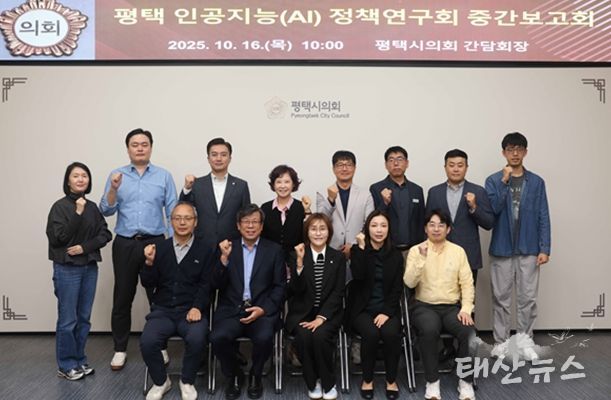 태산뉴스 이지율 기자 | 평택시의회 ‘평택 인공지능(AI) 정책연구회’는 16일 시의회 간담회장에서 평택시 AI 산업 생태계 조성을 위한 정책 연구 용역 중간보고회를 열고 연구 진행 상황을 공유했다.