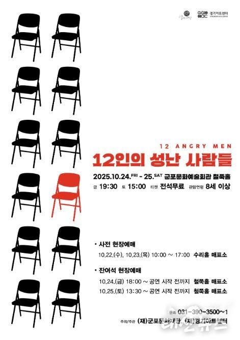 태산뉴스 이지율 기자 | (재)군포문화재단은 오는 10월 24일 ~ 10월 25일 군포문화예술회관 철쭉홀에서 기획공연“12인의 성난 사람들”을 선보인다.