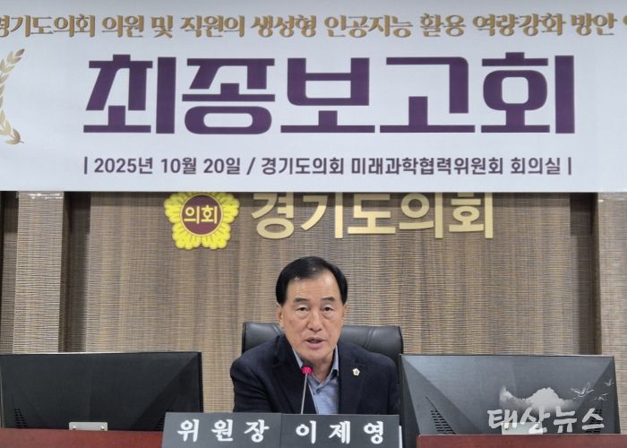 태산뉴스 김준수 기자 | 경기도의회 미래과학협력위원회는 10월 20일, 도의회 위원회 회의실에서 『경기도의회 의원 및 직원의 생성형 인공지능 활용 역량강화 방안 연구』에 대한 최종보고회를 개최했다.