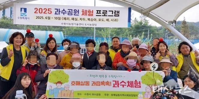 태산뉴스 이동욱 기자 | 수원시 권선구 호매실동 지역사회보장협의체는 지난 20일, 저소득 홀몸 어르신들을 모시고 과수 체험(사과 따기)에 나섰다. 이번 행사는 관내 홀몸 어르신들의 우울감 등을 예방하고 사회적 관계망을 만들기 위해 진행됐다.