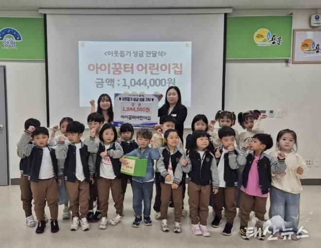 태산뉴스 이동욱 기자 | 양평군 용문면은 지난 20일 용문면 소재 아이꿈터 어린이집이 주최한 ‘소소한 기쁨, 특별한 만남, 행복 나눔 작은 장터’ 바자회를 통해 마련된 수익금 1,044,000원을 용문면에 기탁했다고 밝혔다.