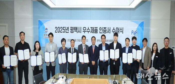태산뉴스 이동욱 기자 | 재단법인 평택산업진흥원은 ‘2025년 평택시 우수제품 선정 지원사업’의 선정평가를 마치고, 지난 9월 29일 인증서 수여식을 개최했다.