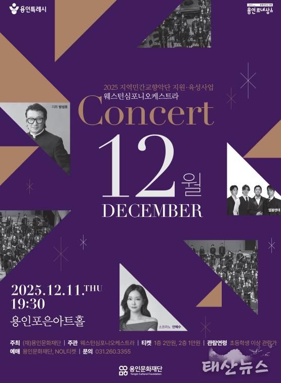 태산뉴스 이지율 기자 | 용인문화재단은 오는 12월 11일 오후 7시 30분, 용인포은아트홀에서 웨스턴심포니오케스트라 '콘서트 ‘12월’' 공연을 개최한다.