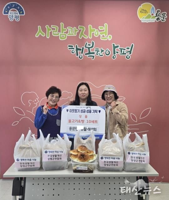 태산뉴스 이동욱 기자 | 양평군 용문면은 지난 22일 용문면 생활개선회가 쌀쌀해진 날씨 속 어려움을 겪고 있는 이웃들을 위해 직접 만든 불고기와 단팥빵 10세트를 기부했다고 밝혔다.