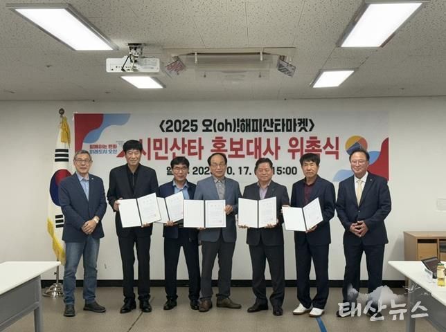 태산뉴스 이동욱 기자 | (재)오산문화재단은 지난 10월 17일, 오산시립미술관 4층 대회의실에서 ‘2025 오(Oh)! 해피산타마켓’ 시민산타 홍보대사 위촉식을 개최하고, 총 9명의 시민산타를 축제 공식 홍보대사로 위촉했다.