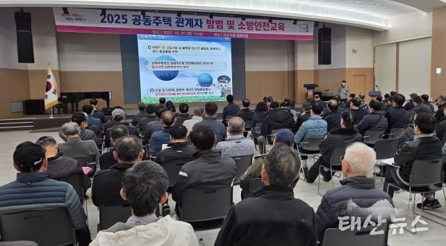 태산뉴스 이동욱 기자 | 군포시는 10월 27일 군포시청 대회의실에서 공동주택 경비업무 종사자 및 시설물 안전관리자 등 200여명을 대상으로 2025년 공동주택 방범 및 소방안전교육을 실시했다.