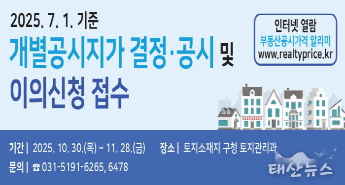 태산뉴스 이동욱 기자 | 수원시 권선구는 다가오는 30일에 개별공시지가를 결정·공시하고 10월 30일부터 11월 28일까지 이의신청을 받는다.