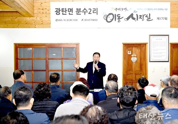 태산뉴스 이동욱 기자 | 파주시 광탄면은 지난 30일 광탄면 분수2리 마을회관에서 ‘제177회 이동시장실’을 개최했다고 밝혔다.
