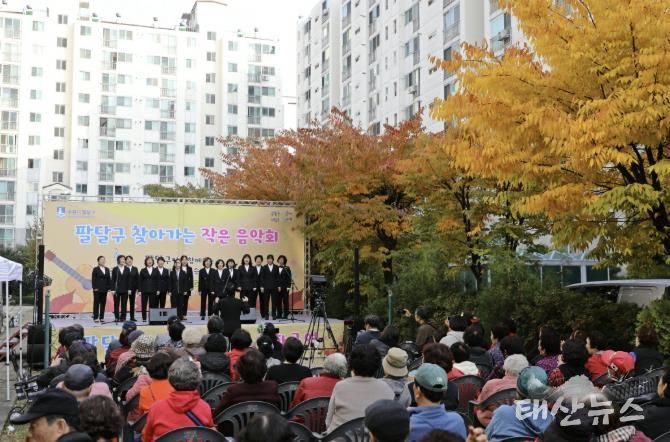태산뉴스 이동욱 기자 | 수원시 팔달구는 지난 10월 31일, 팔달구 매산동 대한대우푸르지오아파트에서 깊어가는 가을, 주민 화합과 여가 문화 증진을 위한 ‘찾아가는 작은 음악회’ 4회차 마지막 공연을 마무리하며 대장정을 마쳤다.