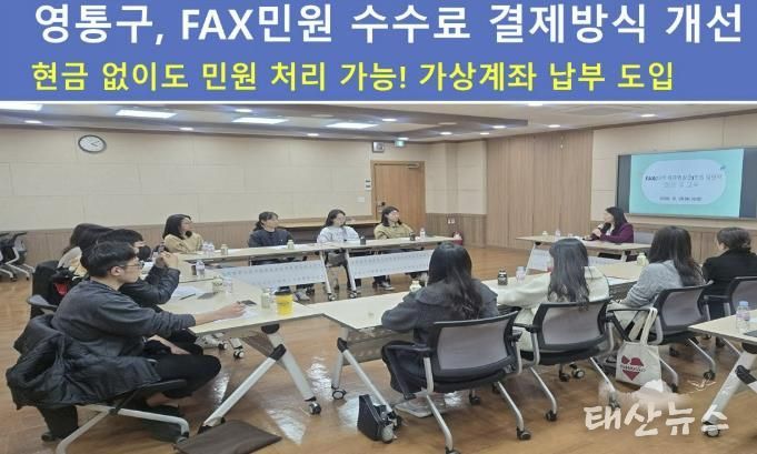 태산뉴스 이동욱 기자 | 수원시 영통구가 지난 31일 시민의 민원 편익을 높이기 위해 FAX민원 수수료 결제방식을 전면 개선했다. 앞으로 사립대학교 졸업증명서 등 FAX민원 발급 시에도 현금 외에 가상계좌를 통한 납부가 가능해져, 현금 미소지로 인한 불편이 크게 줄어들 전망이다.