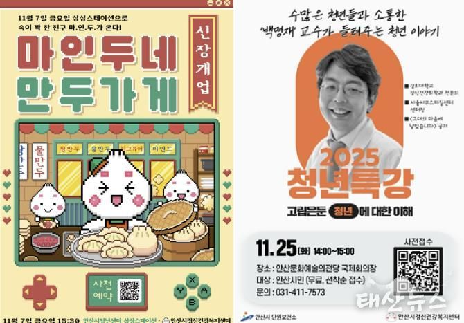 태산뉴스 김준수 기자 | 안산시 정신건강복지센터는 오는 7일과 25일 청년 정신건강을 위한 팝업 행사와 특강을 개최한다고 6일 밝혔다.