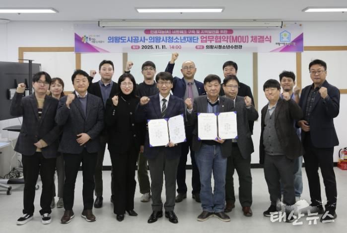 태산뉴스 이동욱 기자 | 의왕도시공사는 11월 11일 의왕시청소년재단과 인공지능 네트워크 구축을 통한 청년 인재 양성 및 지역발전을 위한 업무협약을 체결했다.