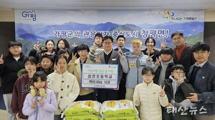 태산뉴스 이동욱 기자 | 가평군 청평면 상천초등학교 교직원과 학생들이 최근 청평면 행정복지센터를 찾아 지역의 어려운 이웃을 위해 백미 10포(10kg 들이)를 기탁했다.