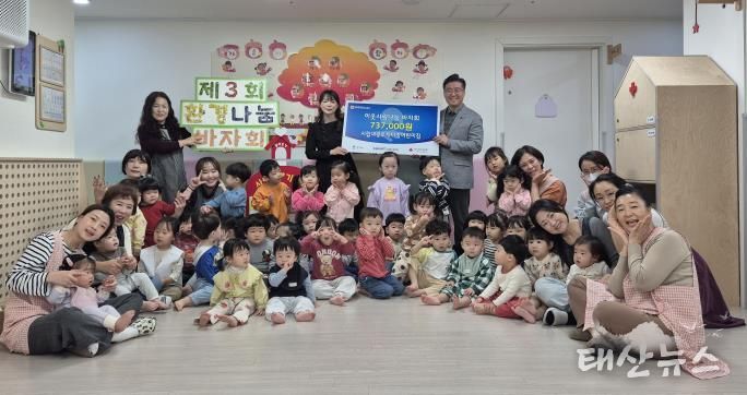 이번 성금은 원아들이 이웃과 환경을 사랑하고 재활용을 활용한 놀이를 전시하며 이웃사랑을 실천하는 제3회 ‘환경 나눔 바자회’수익금 전액으로 마련됐다.