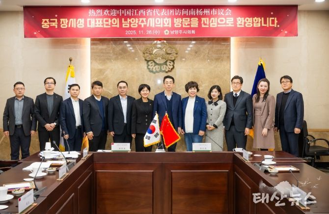 태산뉴스 이동욱 기자 | 남양주시의회는 26일 의회 소회의실에서 중국 장시성 간강신구 방문단을 영접하고, 양 기관의 우호·협력방안을 논의했다.
