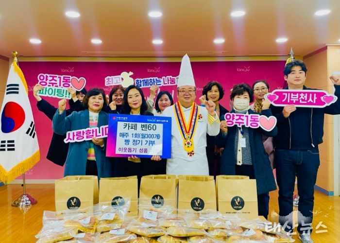 최미영 양주1동장은 “정성 가득한 빵을 기부해주시며 소외계층 지원을 위해 이웃사랑을 실천하는 카페 벤60에 진심으로 감사드린다”며 “기부자의 따뜻한 마음이 잘 전해질 수 있도록 어려운 이웃들에게 소중히 전달하겠다”고 전했다.