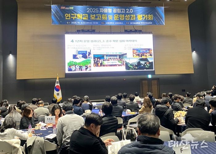 태산뉴스 김준수 기자 | 경기도교육청이 3일 ‘2025 자율형 공립고 2.0 연구학교 보고회 및 운영성과 평가회’를 개최했다. 지역과 함께 만들어가는 자율형 공립고 2.0 연구 및 운영 사례 공유로 공교육의 경쟁력을 제고하고자 마련한 자리다.