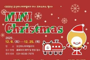 태산뉴스 김준수 기자 | 오산시는 12월을 맞아 ‘미니 크리스마스’ 행사를 오는 12월 6일부터 25일까지 17일간 오산미니어처빌리지에서 개최한다고 밝혔다. 행사는 오전 10시부터 오후 6시까지 진행되며, 크리스마스를 주제로 전 연령이 함께 즐길 수 있는 전시와 체험 프로그램 등 풍성한 콘텐츠가 마련된다.