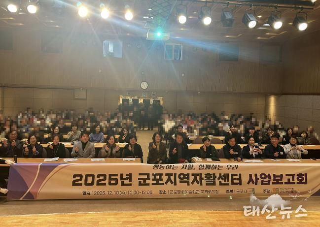 태산뉴스 이동욱 기자 | 군포지역자활센터는 12월 10일 군포문화예술회관 국제회의장에서 2025년 사업보고회를 개최했다. 이번 보고회에서는 한 해 동안의 자활사업 성과와 참여주민들의 성장 사례를 공유했으며, 군포시와 지역 의회, 관계기관 내빈들이 참석해 자활사업의 가치와 참여자들의 노력을 격려했다.