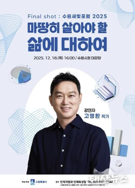 태산뉴스 이동욱 기자 | 전직 코미디언인 고명환 작가가 12월 18일 오후 4시 시청 대강당에서 열리는 제174회 수원새빛포럼 강사로 나선다.