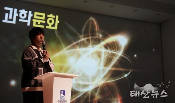 태산뉴스 이동욱 기자 | 과학을 알기 쉽게 설명하고 전달하는 과학 커뮤니케이터 ‘궤도’가 17일 수원청소년문화센터에서 청소년을 대상으로 진로 특강을 했다.