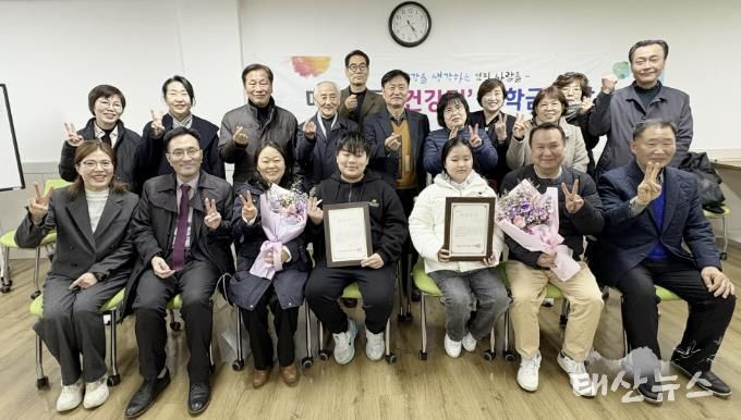 태산뉴스 이동욱 기자 | 수원시 영통구 매탄2동“건강을 생각하는 멋진 사람들”은 지난 19일, 관내 모범 학생 2명에게 장학증서와 함께 장학금 30만 원을 각각 전달했다.