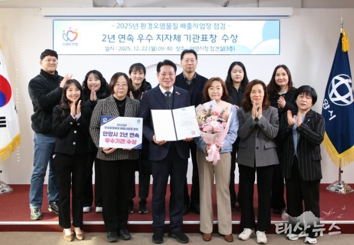 태산뉴스 이동욱 기자 | 안양시는 경기도가 주관하는 ‘2025년 환경오염물질 배출사업장 관리평가’에서 지난해에 이어 2년 연속 우수기관에 선정되고, 경기도지사 표창을 받았다고 22일 밝혔다.