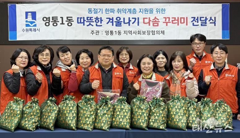 태산뉴스 이동욱 기자 | 영통1동 지역사회보장협의체는 지난 22일 겨울철 한파에 취약한 독거노인의 건강과 안전을 위해 관내 독거노인 15명을 대상으로 기모 실내복 세트와 핫팩을 전달하고 안부를 살피는 나눔 활동을 진행했다.