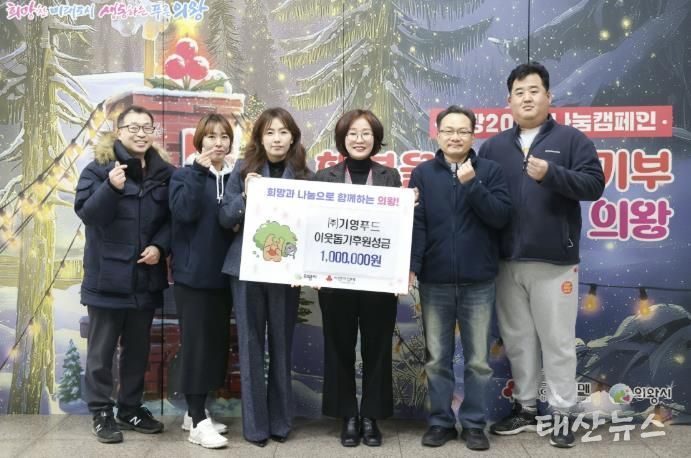 태산뉴스 이동욱 기자 | 의왕시가 12월 22일 (주)기영푸드로부터 어려운 이웃을 돕기 위한 성금 100만원을 기부받았다고 밝혔다.